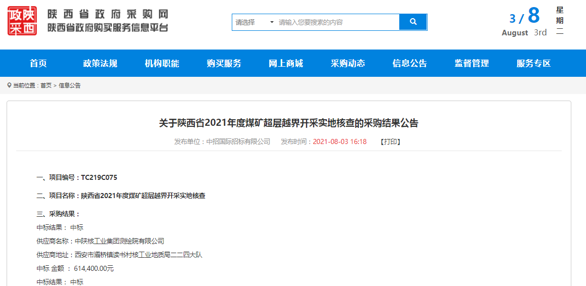 測繪院成功中標(biāo)陜西省2021年度煤礦超層越界開采實(shí)地核查項目 -